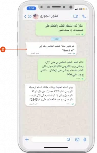 Laila messages Al-Jouri to check her order status.