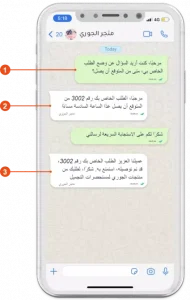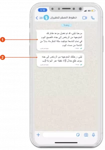 To explain the following examples, we’ll use a fictional WhatsApp user named Laila, a customer of the mock airline company “Saqr Airlines”.